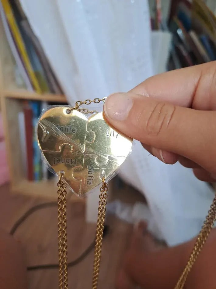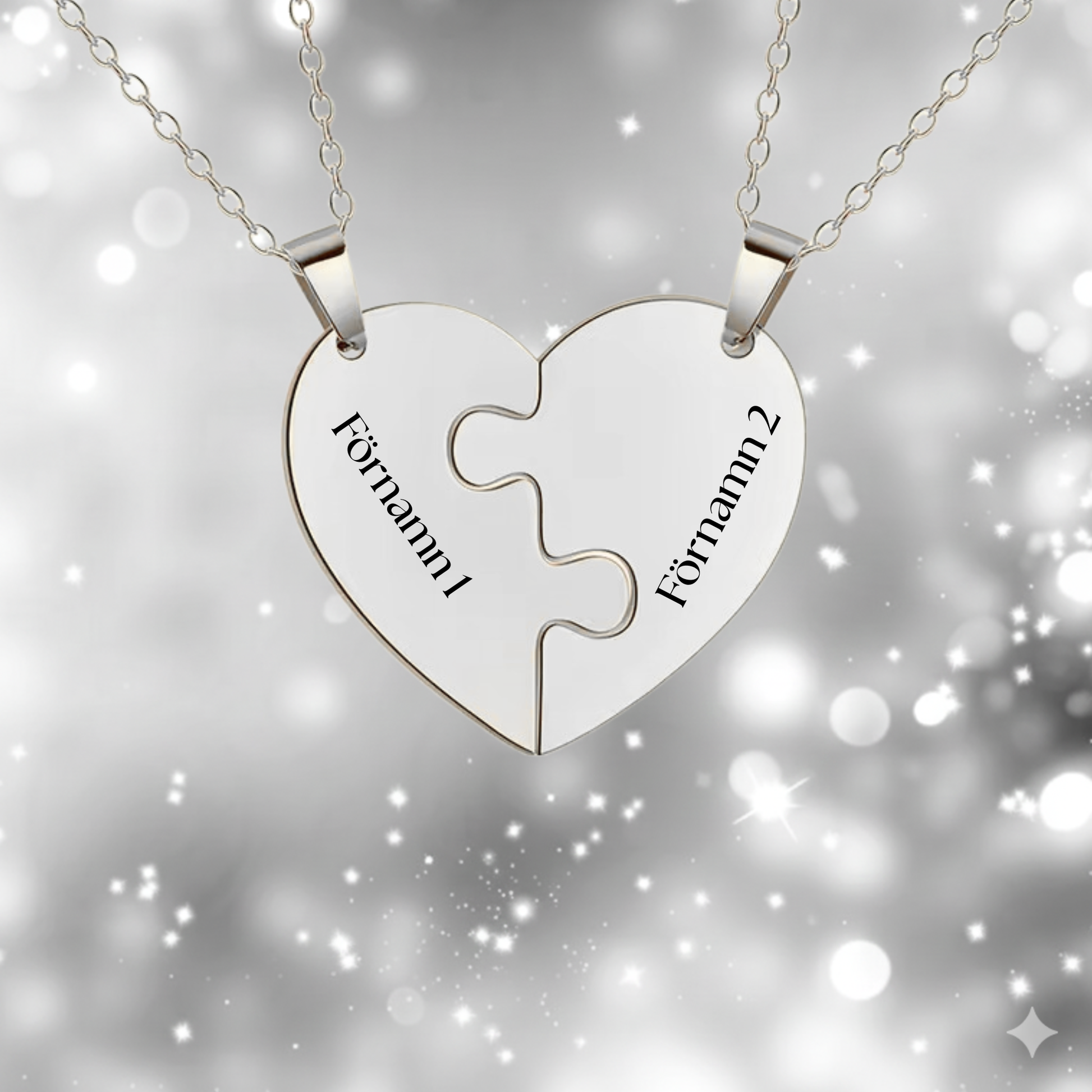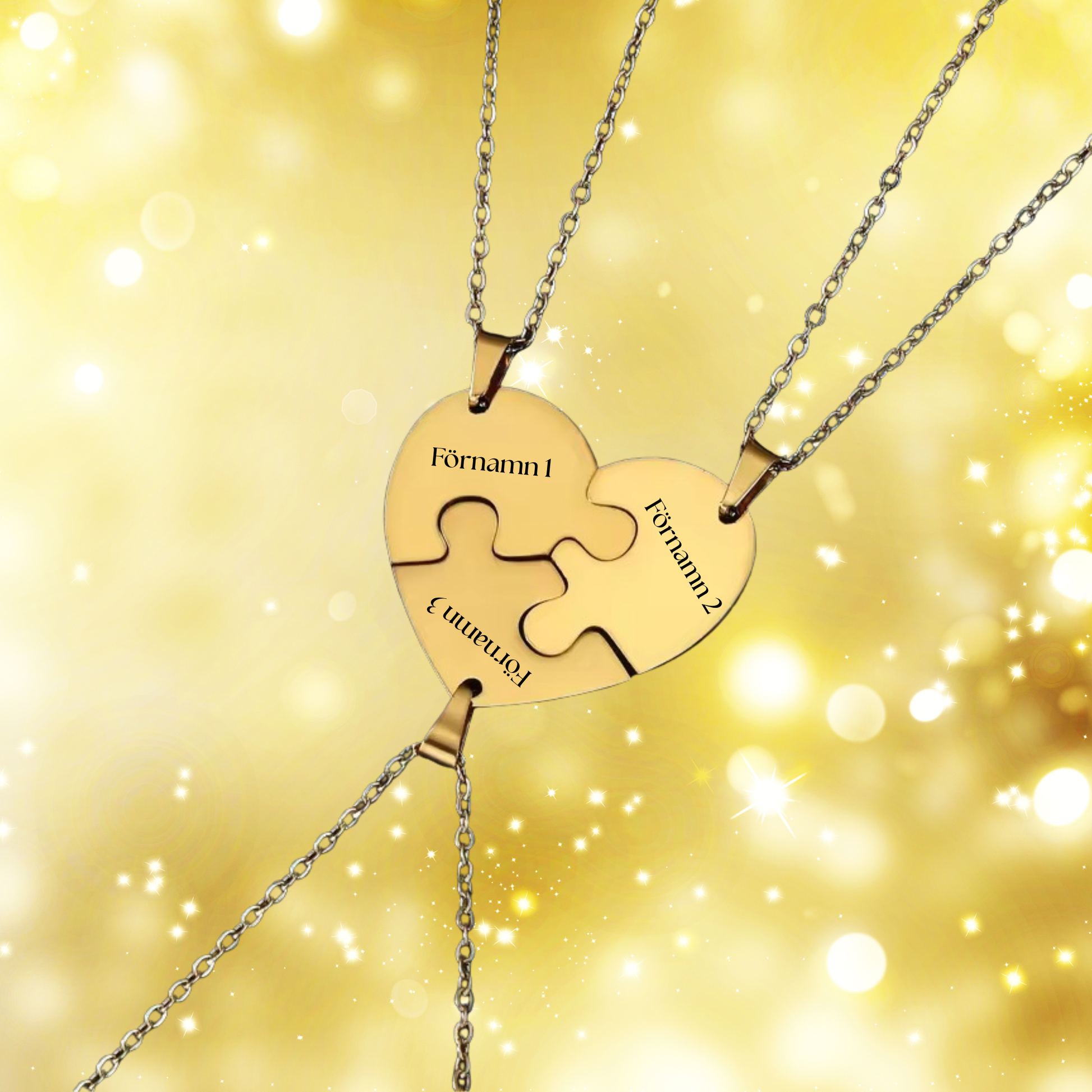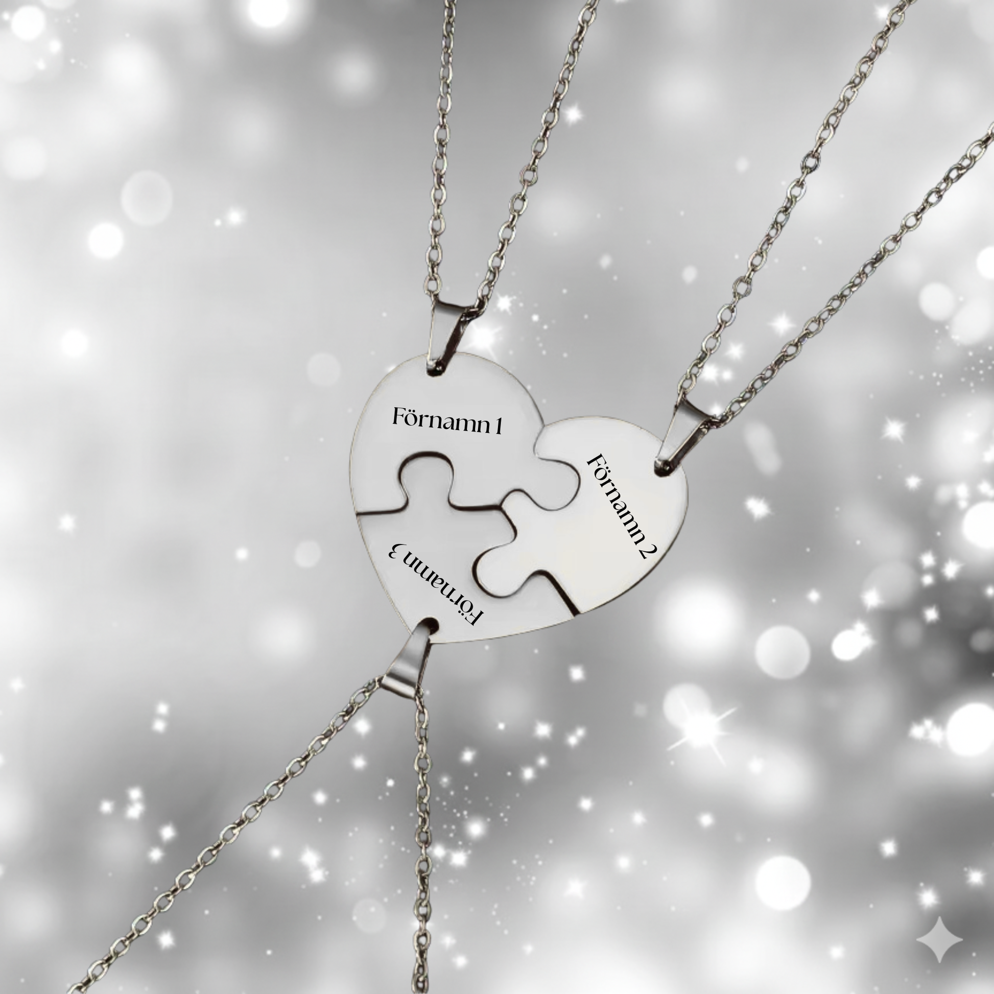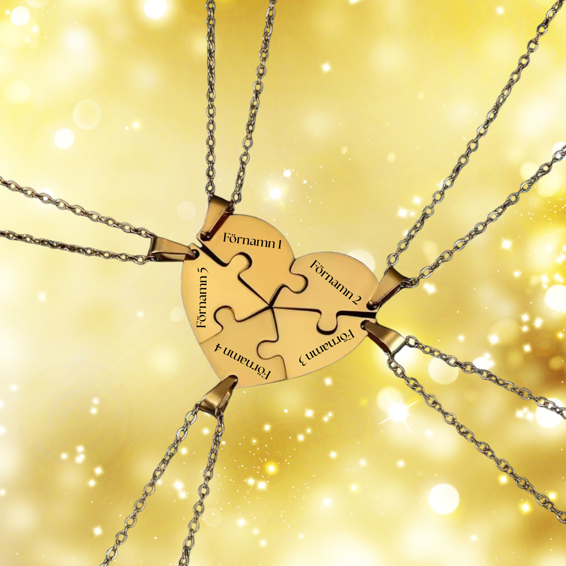 Med vårt handgjorda halsband representerar varje pusselbit en älskad person. Varsamt graverad för att symbolisera ett unikt, djupt och oförstörbart band.